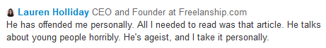 it as the commenters were not sympathetic to her POV; most of them warned the author that she, too, will one day face age discrimination. Lyons also